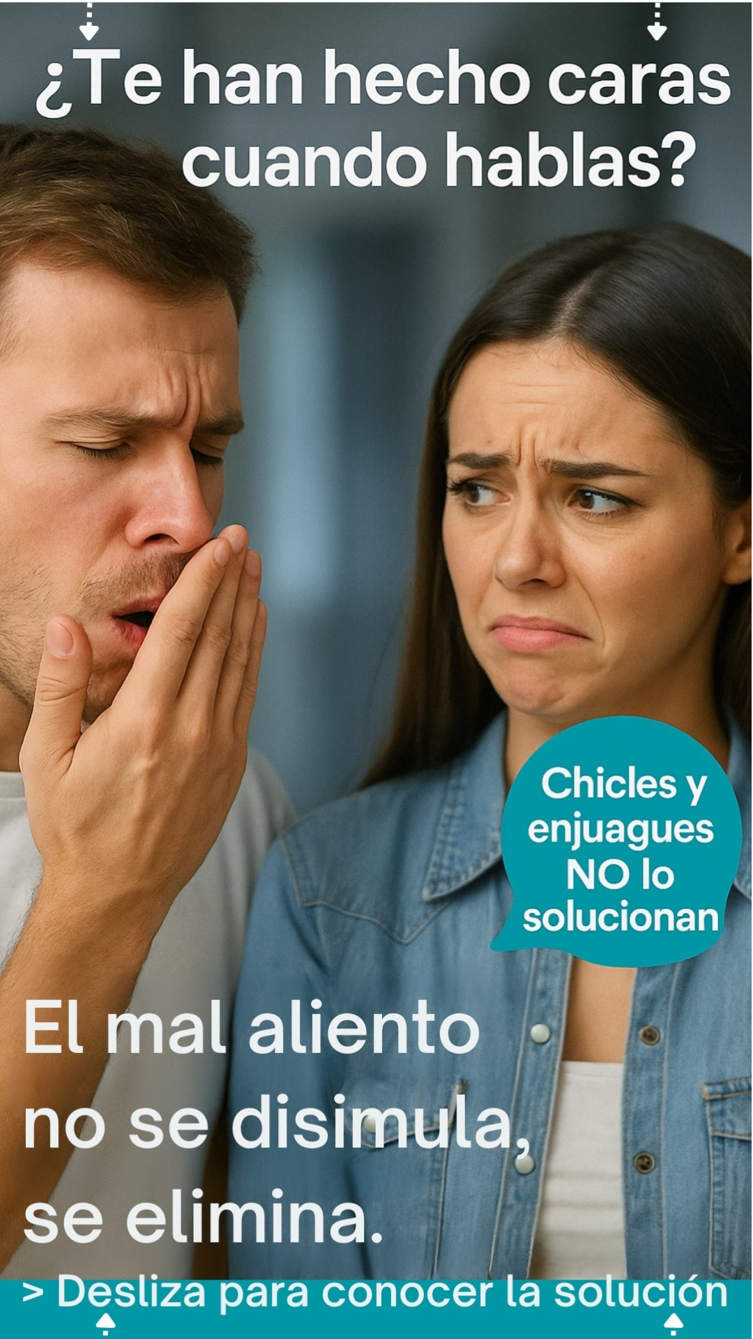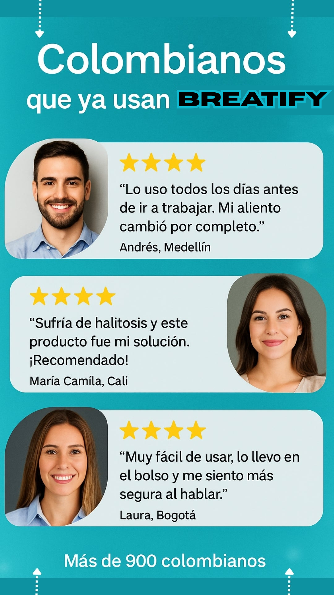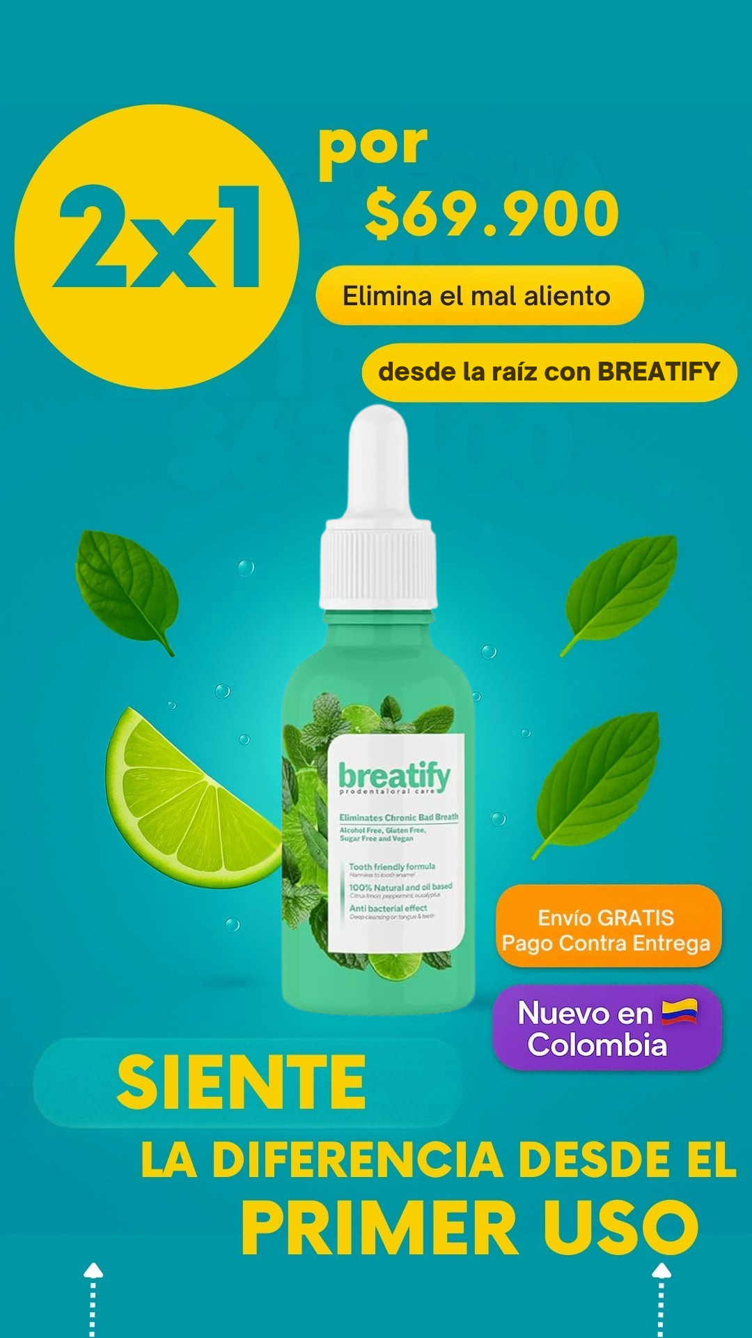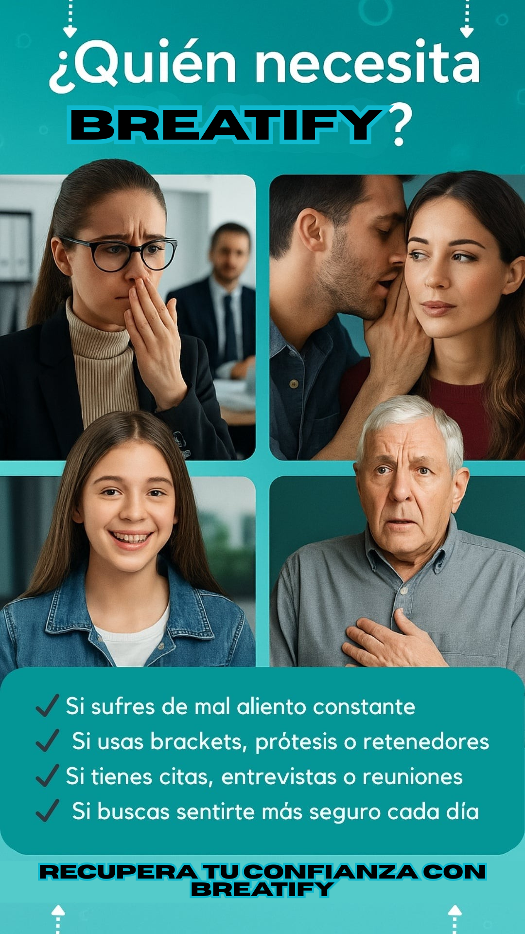 Breatify elimina bacterias que causan el mal aliento desde el interior, actuando con clorofila y extractos naturales.